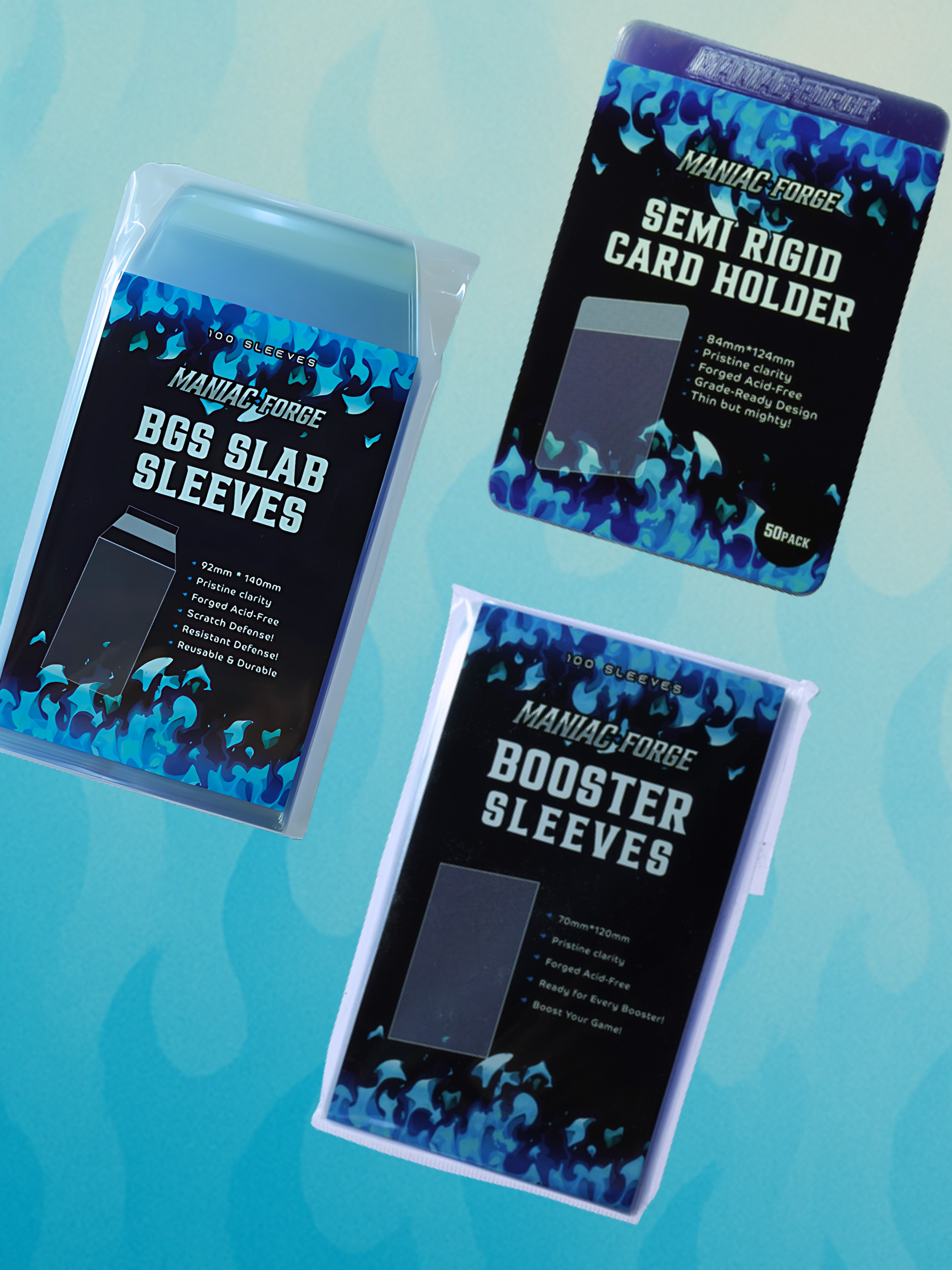 At ManiacForge, we're not just a card sleeve brand we're your card's first line of defense. Born from a passion for TCGs and a frustration with weak protection, we set out to develop gear that meets the standards of true collectors, players, and graders. Every sleeve, toploader, and protector we design is crafted with a purpose: to maintain condition, increase confidence, and enhance your collecting experience.